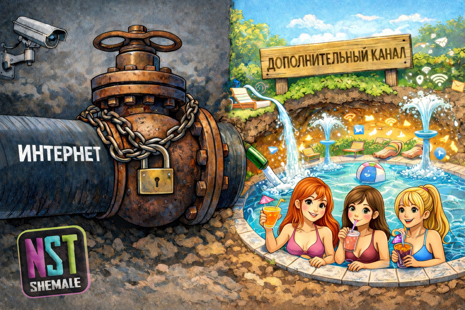 Лапочки Резервный домен nstshemale.ru подключен через reverse-proxy. Ранее аналогичная система была запущена для WELOVESISY и успешно себя показала. Если вам блокируется доступ к сети, то данная версия в 95% случаев открывается. Провайдер при этом видит подключение к российскому IP, а далее уже трафик отправляется сайту. Сервер тот же — меняется полоса подключения. Логи у прокси не пишутся и получить данные пользователя невозможно даже при штурме дата-центра. …