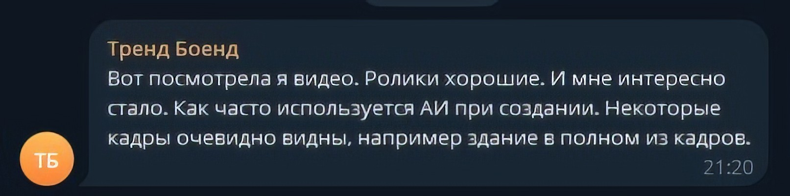 Тренд Боенд Ты пишешь: “Вот посмотрела я видео. Ролики хорошие. И мне интересно стало. Как часто используется АИ при создании. Некоторые кадры очевидно видны, например здание в полном из кадров”. Привет, Тренд Боенд Спасибо за добрые слова в адрес роликов. Касательно ИИ, он используется исключительно во вспомогательных целях – это создание перебивок и переходов, как то пролет камеры по коридору, крупный план объекта или как в …
