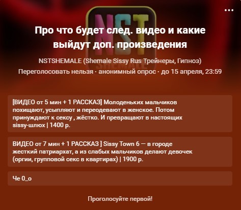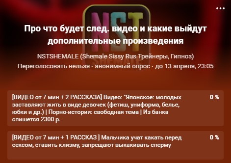 NstShemale – Сисси-Трейнеры, Гипноз, Мотивация на Русском 🔒 Официальный сайт | Сисси-мотивация (sissy trainers, hypno, lesson, tranny made), истории, уроки, гипноз. Русскоязычное сообщество для shemale, tranny.